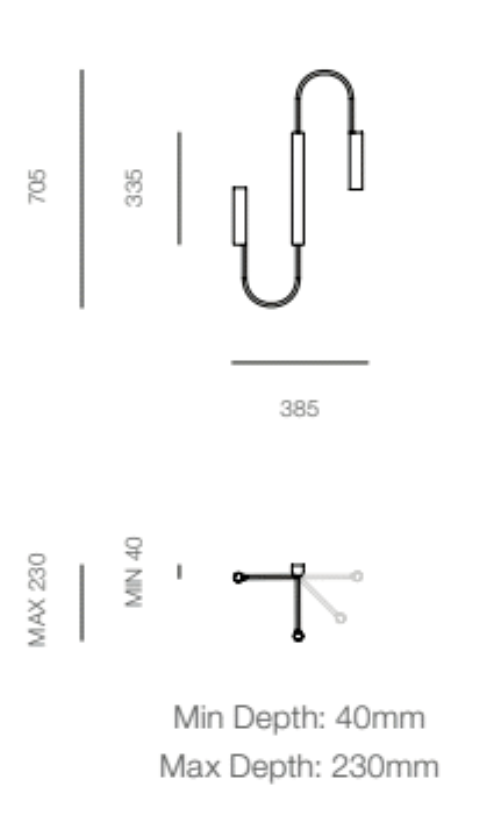 Width 385mm | Height 705mm | Depth 40mm (Minimum) 230mm (Maximum)